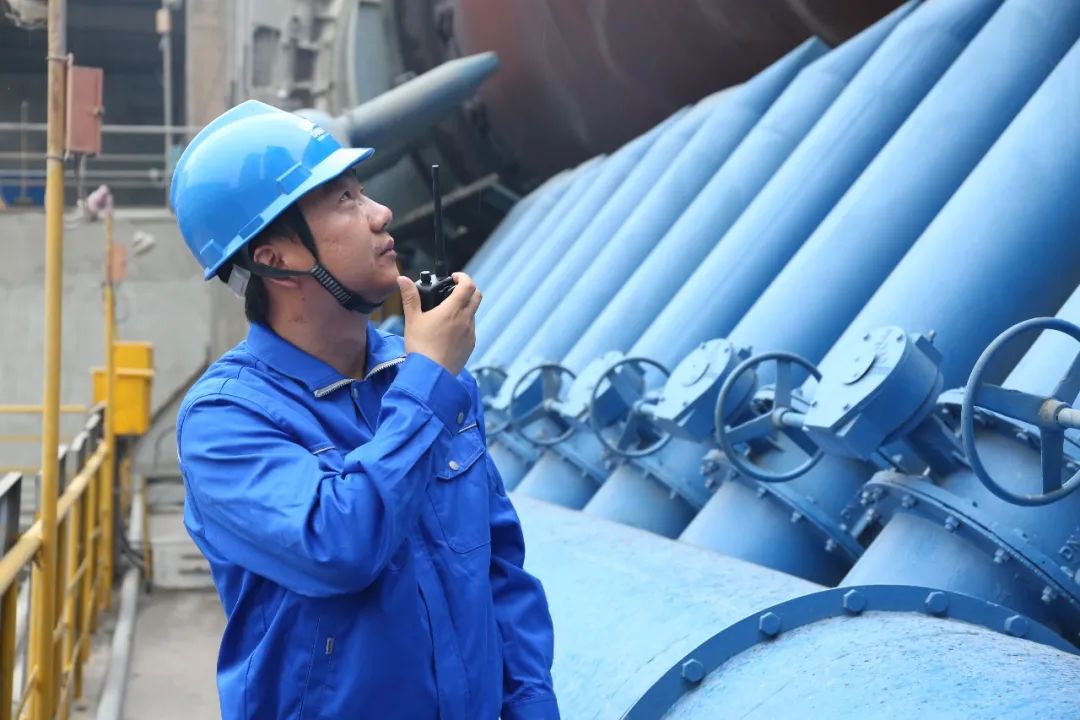 彭忠耀在回轉窯現場指揮調整參數